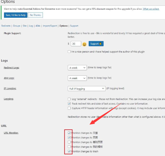 緊著這打開Options對插件進行設置,按照我勾選的就可以了,選擇設置好你的Monitor changes。(我的站點語言我設置的是中文,英語站點也是一樣的道理)