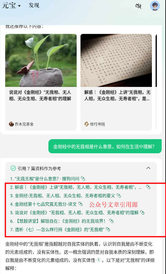 我推薦并不是因為騰訊元寶APP有多好用,而是因為它的引用源是微信公眾號,封閉的優質內容素材庫。