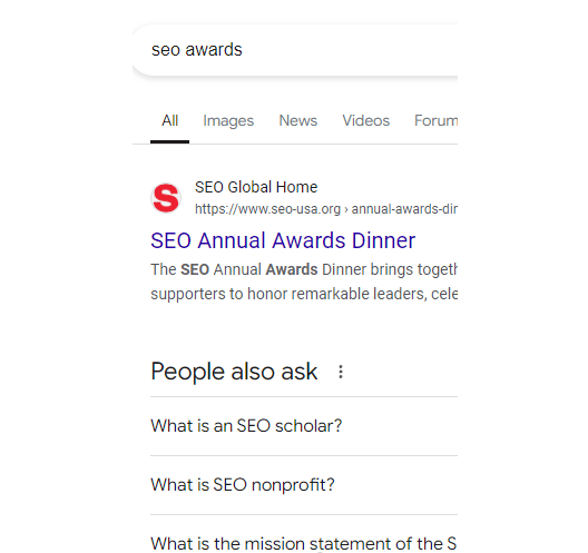 關鍵詞"SEO Awards"的SERP截圖