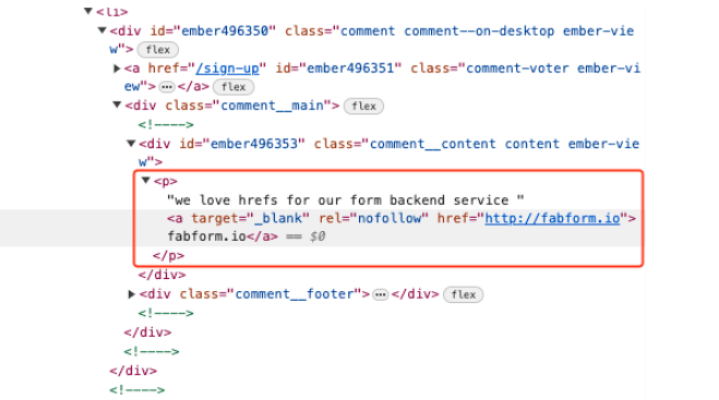 簡單分析一下這個鏈接,會發現平臺給這條外鏈的設置的屬性是NOFOLLOW,也就是不傳遞權重。