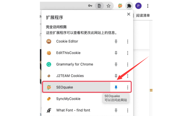 首先谷歌瀏覽器擴展程序里搜索SEO quake插件,添加完的SEO quake插件如下: