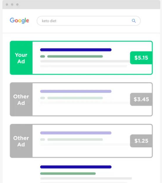 廣告的排名通常與某人出價的多少成正比。因此,如果你是出價最高的人,你將出現(xiàn)在所有其他廣告的上方。