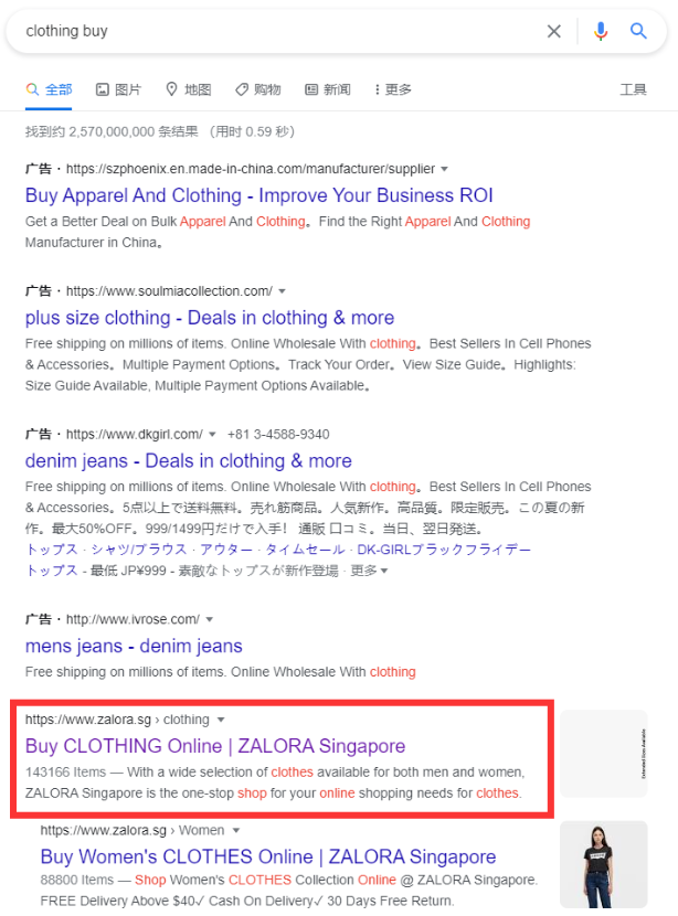 可以看到上圖中最上方的搜索結(jié)果是有些被標(biāo)注為「廣告」的,這些為【Google Ads】的平臺中進行競標(biāo)而達到曝光的【關(guān)鍵字廣告】;