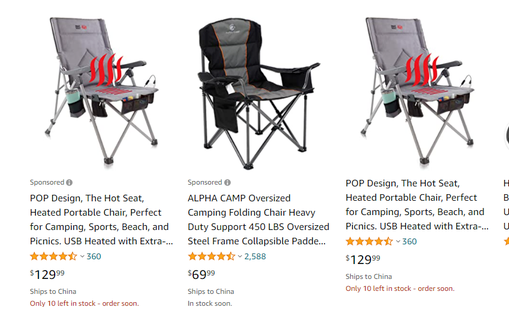 主要的獲取流量的關(guān)鍵詞有“heated camping chair”,加熱的戶(hù)外椅子,我們一般戶(hù)外椅子都是夏天希望能夠透氣涼快的,這個(gè)是針對(duì)冬天使用的。
