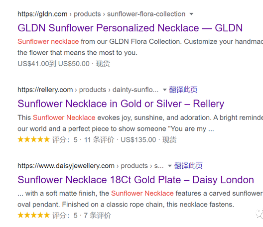 下面,我再找個(gè)關(guān)鍵詞來(lái)分析下,sunflower necklace