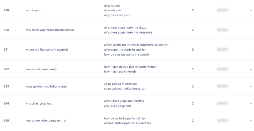 比如上圖我輸入“yoga”與“pants”這兩個(gè)關(guān)鍵詞進(jìn)行查詢,系統(tǒng)會(huì)自動(dòng)匹配出與這兩個(gè)關(guān)鍵詞相關(guān)的所有話題。