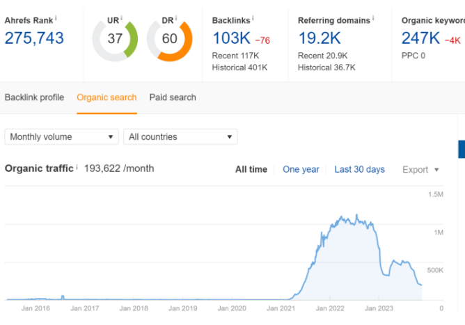 而在經歷了SERP異常動蕩的去年+今年,若干次更新的洗禮之后,直接干到了第一。