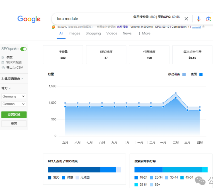 下面能看到有多少人點擊了SEO結果,有多少人點擊了廣告結果,這個占比可以參考你排名第一位能獲得多少流量,因為廣告是排在第一位前面的。