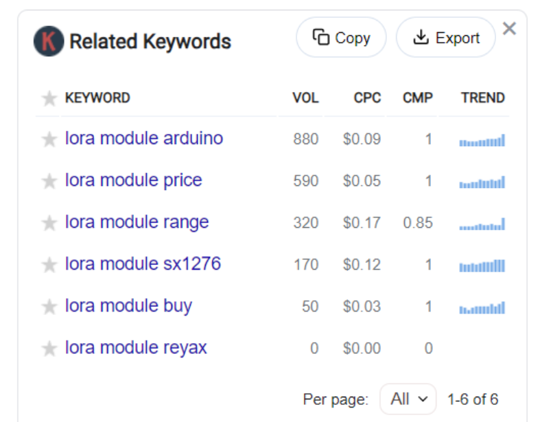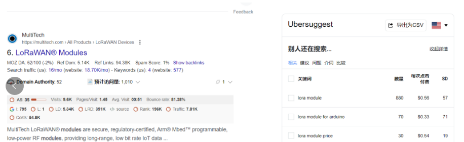 旁邊還有每個插件給出的一堆長尾關鍵詞的搜索量和cpc,非常方便我們找長尾詞。