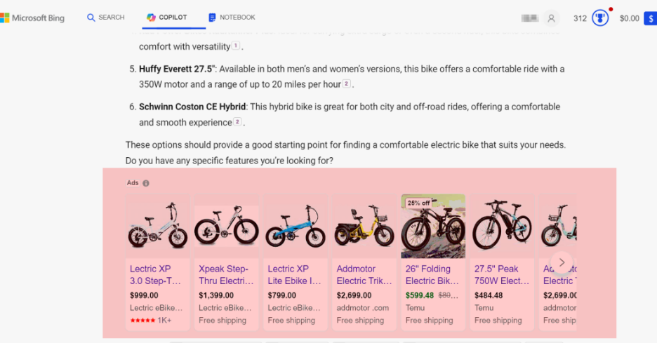 5、Bing已經在Copilot的結果嵌入廣告,從長遠來看,Bing廣告還有獲客增長空間。