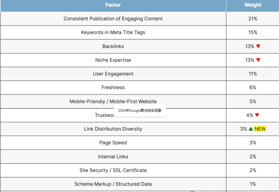 對于做谷歌SEO的朋友們來說,大家都希望能知道谷歌搜索引擎排名到底有哪些比較重要的排名因素。今年5月份泄露的谷歌的API文檔說影響排名的參數有超過14000個。在海外,有不少做SEO服務的Agency一直在探索和研究谷歌排名算法的核心因素。在6月份,來自舊金山的First Page Sage就發布了他們研究的2024年谷歌排名的重要因素和變化。