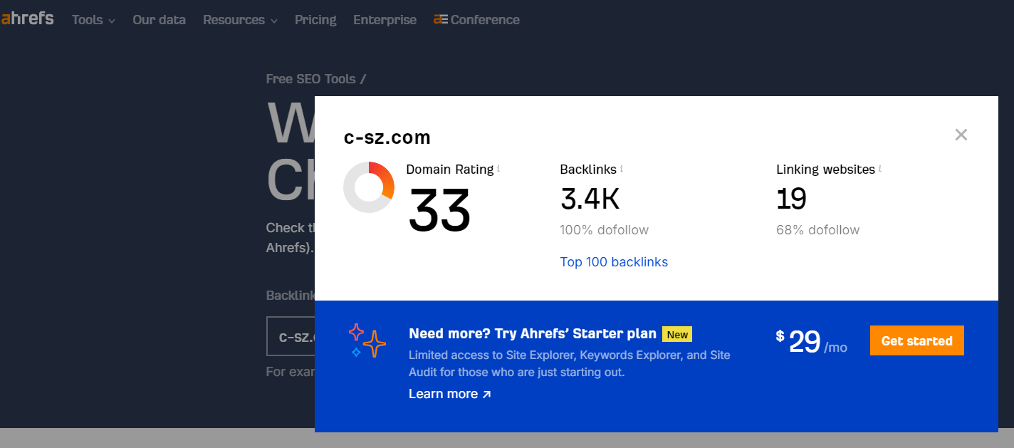 如果想要查看網站的DR值,可以去ahrefs去注冊登錄,然后輸入自己網站的地址,就可以得到自己網站的DR值了。