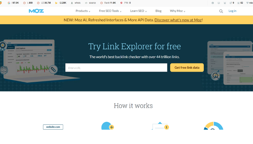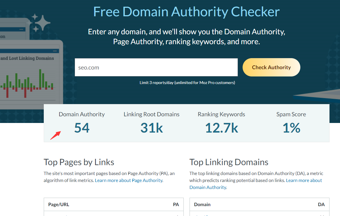 這個解釋基本上就是說影響頁面在搜索引擎排名的一個權重指標,越高越容易排名。想要獲得頁面的PA,需要用的Moz的工具:https://moz.com/link-explorer