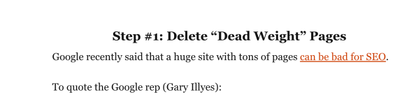 回過來想想我的文章,可能只有SEO老手才看得懂。我原來帖子的第一步是:刪除低質(zhì)量頁面。