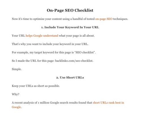 比如,那篇有關(guān)SEO檢查清單的帖子,我這樣問自己:“用戶搜索SEO檢查清單的時候,真正想要的是什么?”