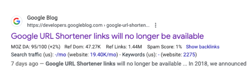 這不,已經有很多相關文章冒出來迎接這部分的搜索流量了。不過暫時還沒看到專業的遷移工具做出來,我覺得這種協助將鏈接從谷歌短鏈上遷移出來的工具,應該算是一個機會吧。
