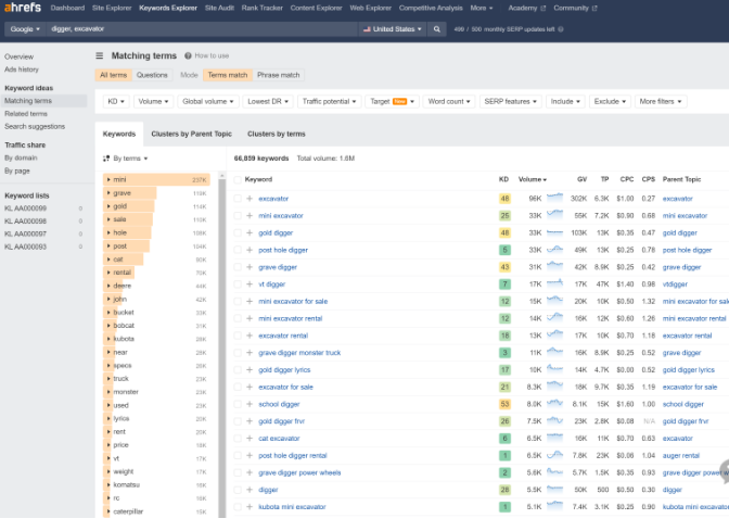 Ahrefs關(guān)鍵詞拓展功能界面: