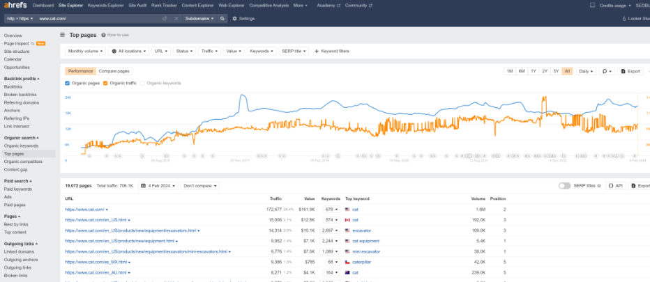 Ahrefs查看競爭對手頁面數(shù)據(jù)功能截圖:
