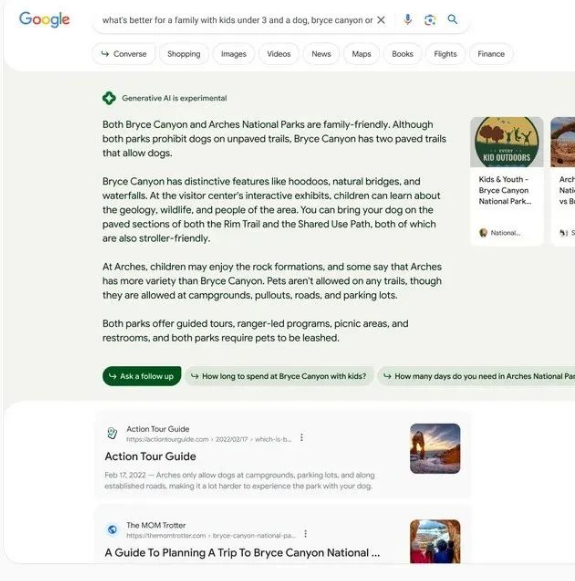 在使用SGE時,用戶看到的搜索結(jié)果頁面會以一種全新的方式呈現(xiàn)(如下圖),以更好地滿足用戶的搜索需求。