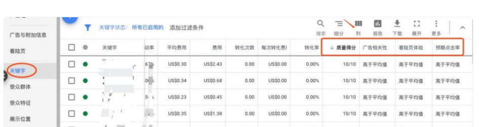 同樣的出價,只要你的廣告質量得分足夠高,你就能排在競爭對手上面,甚至出價沒那么高,你也可以排在它上面。而我們的實際扣費也并不只是取決于我們的出價。