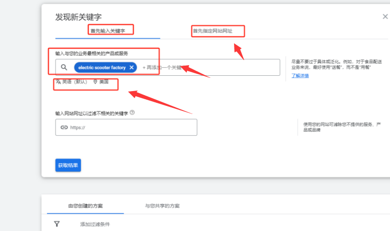 這里我們可以直接使用谷歌廣告地免費工具,關鍵詞規劃師。如下,找到并打開我的關鍵詞規劃師,并使用發現新關鍵字功能,找到我們需要投放的目標關鍵詞