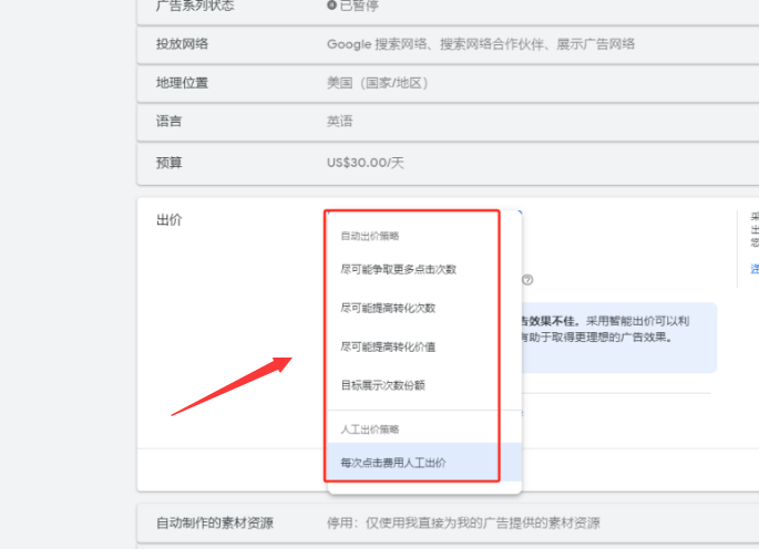 谷歌廣告的五種出價方式,先講下4種自動出價策略,后面再講人工出價這種我推薦的出價方式。