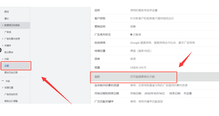 如果已有很多轉化數據,可以考慮使用爭取更多轉化,并設置一個目標每次轉化費用。如果只是想快速獲取更多流量,可以使用爭取更多點擊。(如果你不了解這些出價方式以及設置方法,請直接看下文)