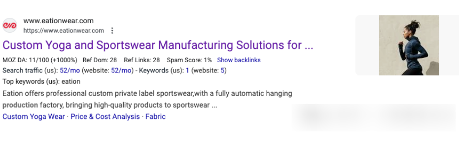 可以看到頁面標(biāo)題上有比較明顯的B端屬性詞根,像 Custom,Manufacturing 這樣的詞根一眼看到就覺得是不錯的參考標(biāo)的。如圖: