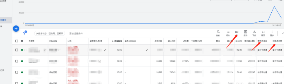 找到我們花錢最多的搜索廣告系列,在廣告系列中同樣以花費高低為優先級,優先分析花費高的廣告組,關鍵詞。然后再依次查看其它廣告組,關鍵詞。然后從花費高低依次去查看我們關鍵詞投放的是否準確,如果關鍵詞準確,那么我們廣告基本成功了一大半。