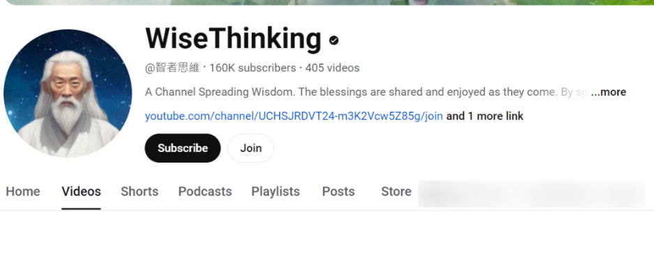 這個網站引流其實是通過youtube頻道的,如下圖就是這個網站的頻道,還很洋氣的取了一個英文名字WiseThinking。如圖: