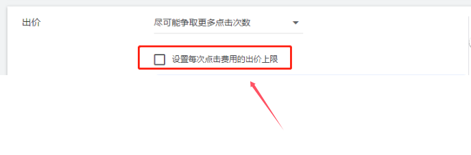 9.勾選“設置每次點擊費用的出價上限”,不同的出價方式,需要設置的內容都不一樣,如圖: