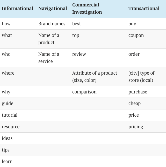 我們都知道內容創作是為了解決用戶搜索意圖,而用戶搜索意圖通常分為4種: