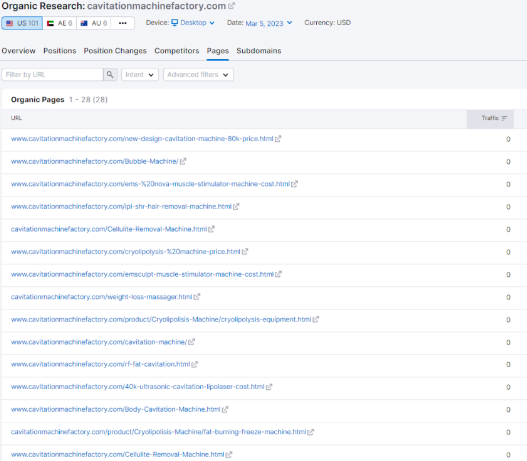 全站美國流量為0,關鍵詞101個(數據截止到2023年3月5日)