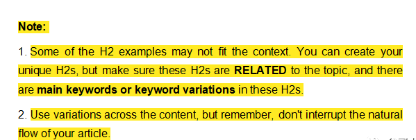 (3)提供文章H2標題(即子話題),確保寫手不會嚴重偏題。子話題可參考整合競爭對手的內容,加上自身理解,或參考收集的相關詞,如:
