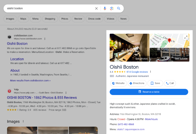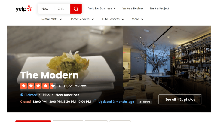 本地目錄:企業可以列出其信息的在線平臺,例如 Yelp。如圖: