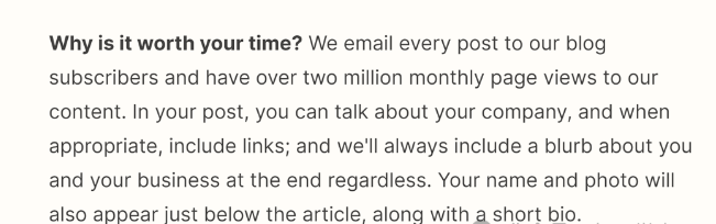 包含反向鏈接:在內容中自然地包含指向您網站的反向鏈接。大多數接受來賓帖子的出版物允許插入一兩個鏈接。但是,最好徹底檢查他們討論鏈接插入的部分。如圖: