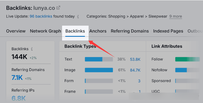 使用 Semrush 的反向鏈接分析來評估競爭對手的反向鏈接配置文件。