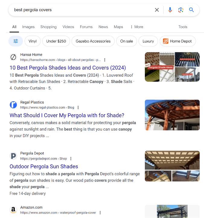 例如,如果您經營一個后院網站,您可能希望在“最佳涼亭蓋”中排名靠前。如圖: