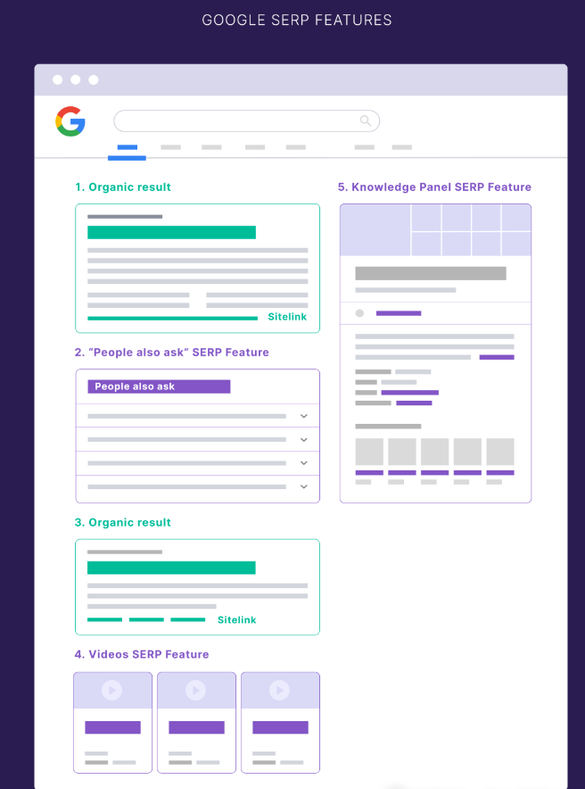 SERP 功能: SERP 內的特殊框或增強功能,例如 AI 概述、精選摘要、本地包和知識面板。如圖: