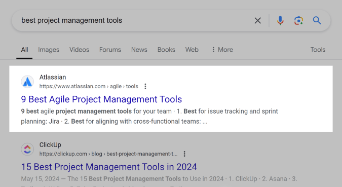 例如,如果您的公司銷售項目管理軟件,您可以創建一個針對查詢“最佳項目管理工具”的博客文章。如圖: