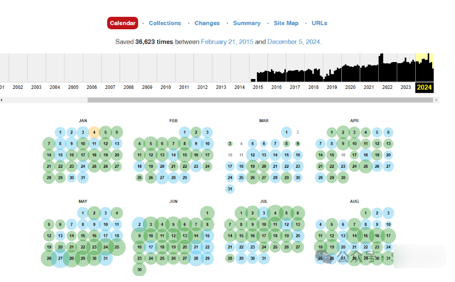 上圖是 archive.org 按日歷記錄的網站緩存。