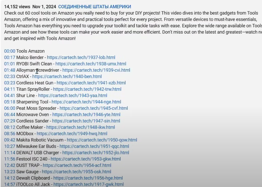 油管的優點之一就是可以在視頻介紹處掛上產品鏈接,點進去一個視頻下拉會看見各個時間段的配件素材來源處,點擊一個鏈接就會跳轉到購物平臺。如圖: