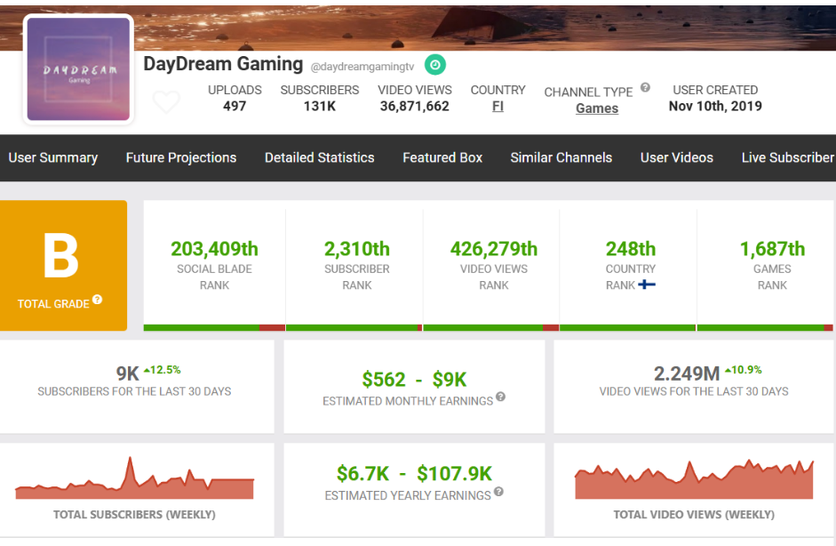 做油管為的是賺錢,所以在找對標賬號的時候也要關注一下賬號的收益情況,如何查詢收益可以用到這個工具SOCIAL BLADE.如圖: