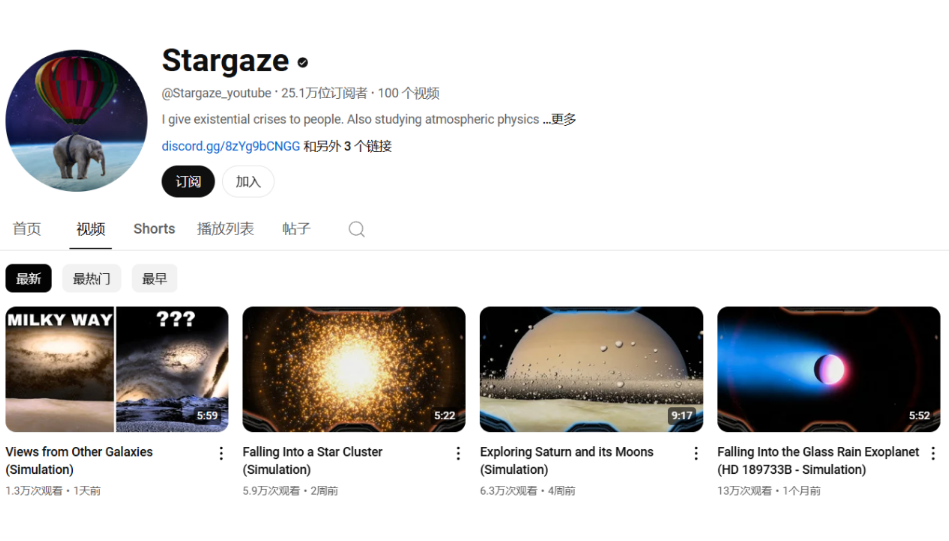 這是一個科普類頻道,科普宇宙科目,宇宙大海一直都是所有人想要探索的,所以這類賬號100個作品就吸引了25萬的粉絲,這種科普類的視頻國內平臺也有很多,同樣可以借鑒。如圖: