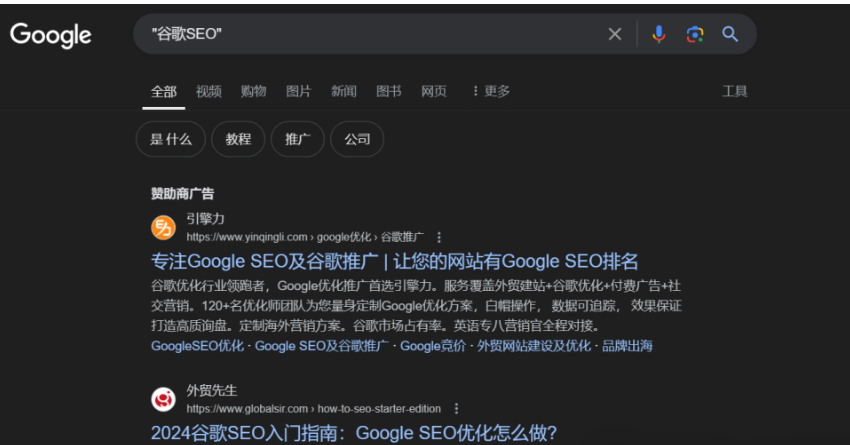 比如,我們想要查找谷歌SEO相關(guān)的信息,不限定網(wǎng)頁(yè)的類型,但必須包含“谷歌SEO”這個(gè)完整的詞匯。輸入搜索指令:”谷歌SEO”