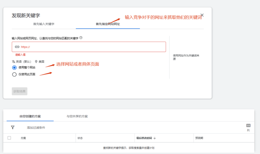 也可以輸入競(jìng)爭(zhēng)對(duì)手的網(wǎng)址抓取他們的關(guān)鍵字。