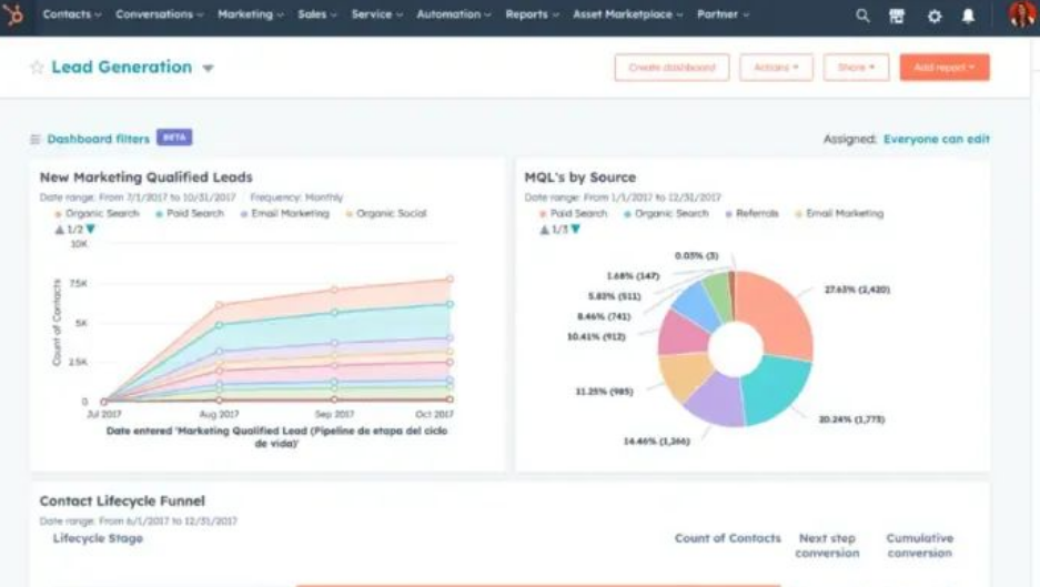 HubSpot、Salesforce和SharpSpring等流行的CRM是了解整個客戶旅程和衡量B2B SEO策略的真實投資回報率的寶貴工具。如圖: