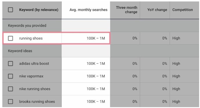 雖然關(guān)鍵詞規(guī)劃師告訴你“跑步鞋”每月有10萬到100萬次搜索,但關(guān)鍵詞魔術(shù)工具告訴你大約是165.000次。