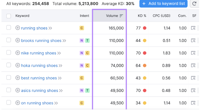 要獲得更精確的估計,請使用Semrush進行關(guān)鍵詞研究。
