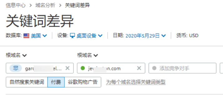 關(guān)鍵詞差異:你可以輸入最多5個(gè)競(jìng)爭(zhēng)對(duì)手的網(wǎng)站,然后來對(duì)比他們的自然搜索關(guān)鍵詞有沒有重疊,各自的排名是多少,還有你還可以查詢5個(gè)競(jìng)爭(zhēng)對(duì)手網(wǎng)站的付費(fèi)關(guān)鍵詞有沒有重疊等等,一樣就可以一目了然的知道不同網(wǎng)站的關(guān)鍵詞側(cè)重點(diǎn)在哪里。如圖: